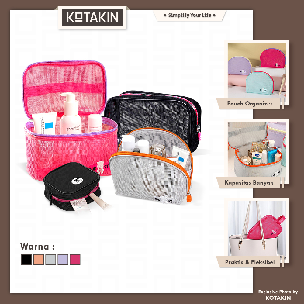 • Model transparan jaring. isi pouch mudah terlihat jika dibutuhkan