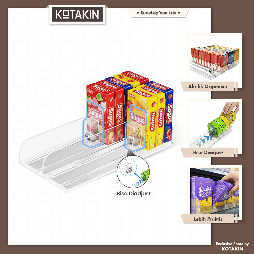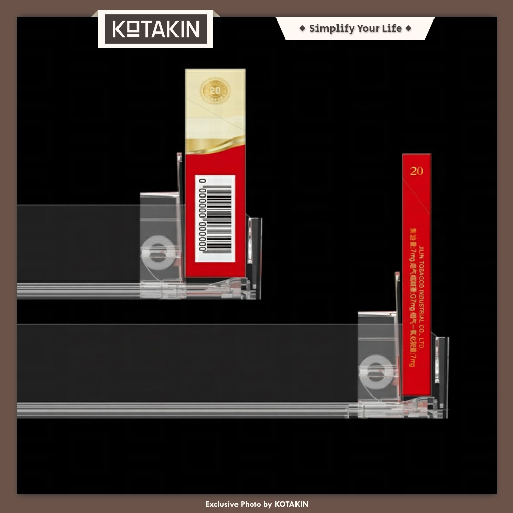 • Pusher display otomatis panjang 28cm, membantu mendorong produk ke depan rak secara rapi