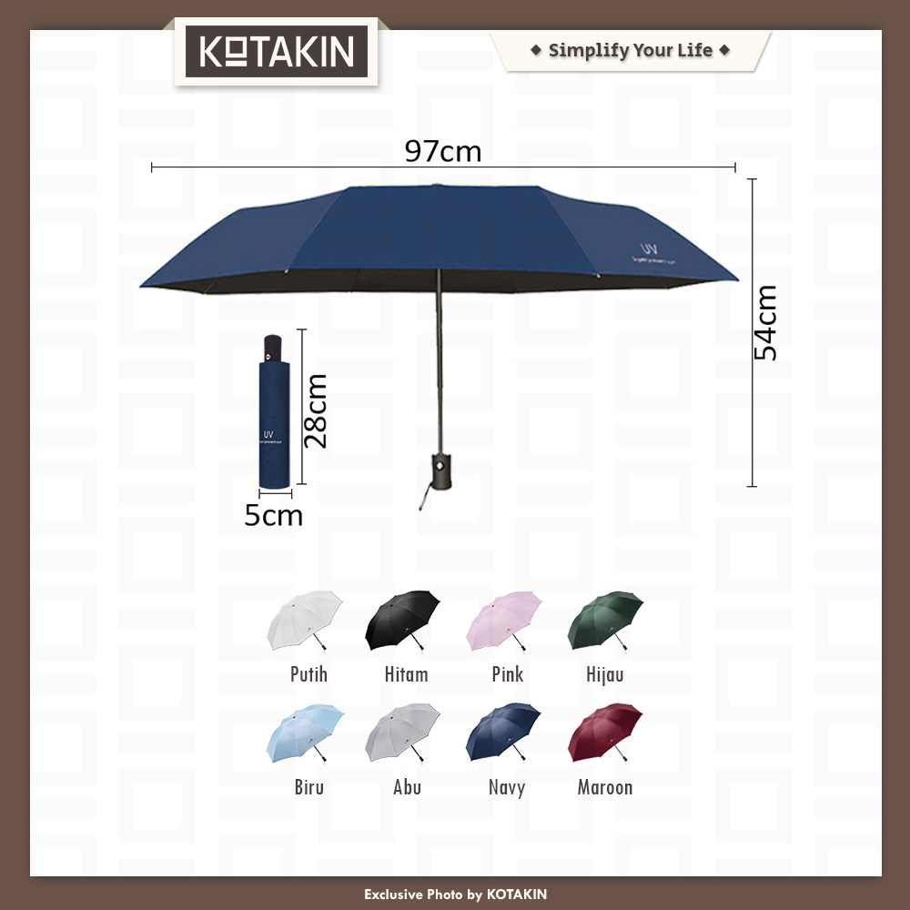 • Payung lipat anti UV melindungi dari panas sinar matahari dan hujan