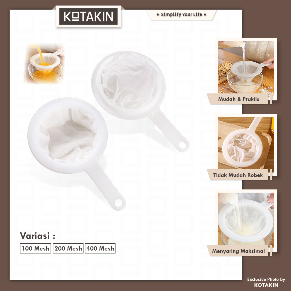 • Terbuat dari bahan nilon halus, bisa menyaring cairan hangat atau dingin