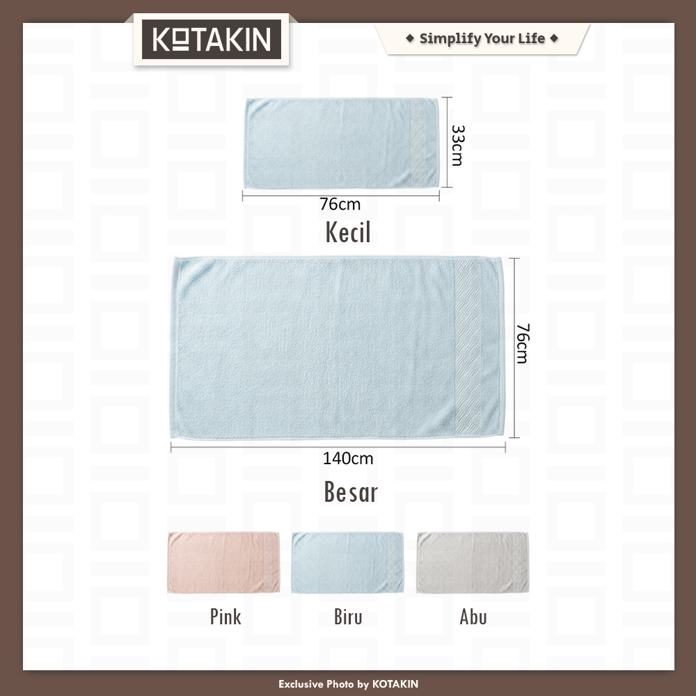 • Serat handuk tidak mudah rontok, tetap halus meski sering dicuci