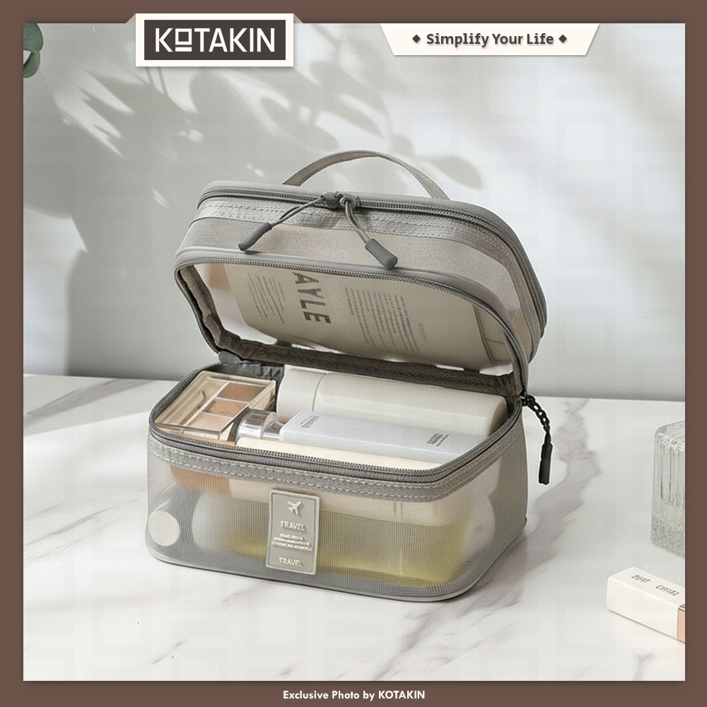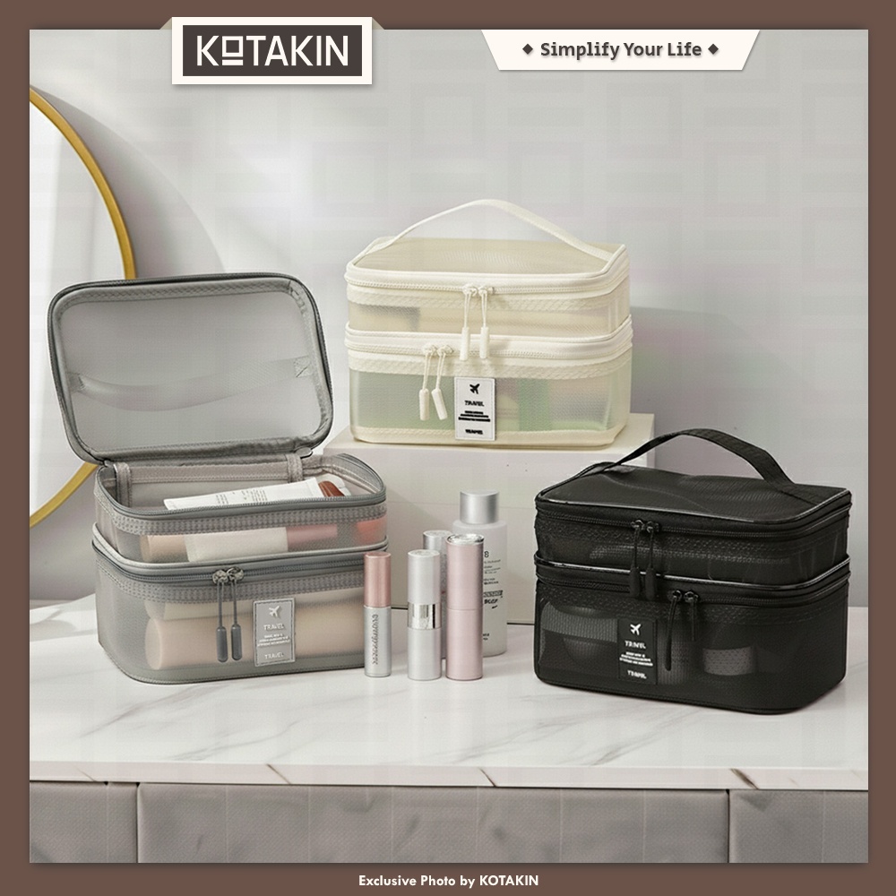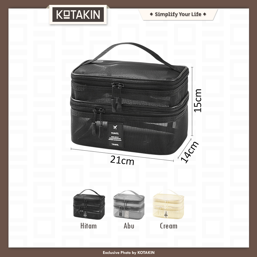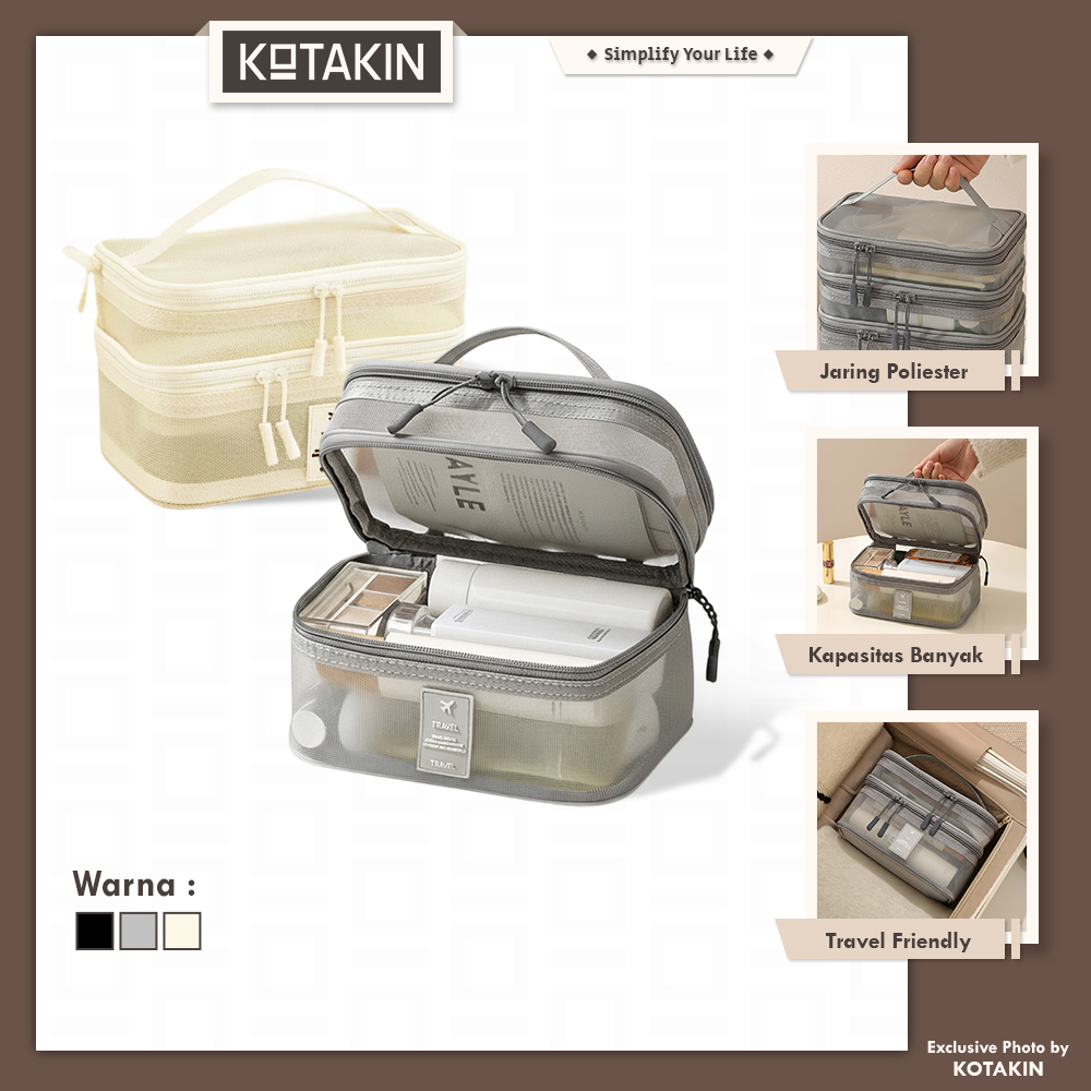 • Memiliki beberapa kompartemen untuk makeup, skincare, pakaian dalam, dan perlengkapan mandi