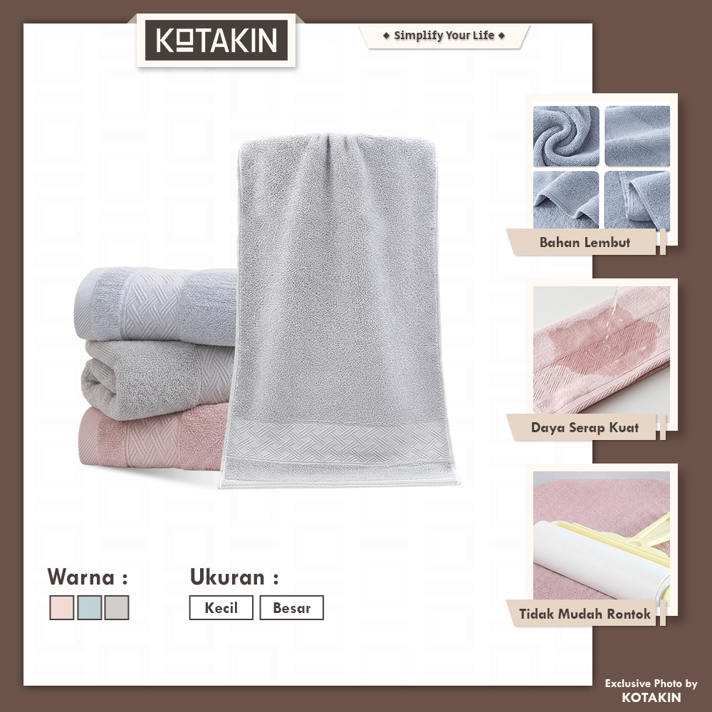 • Serat handuk tidak mudah rontok, tetap halus meski sering dicuci