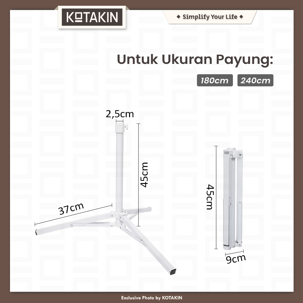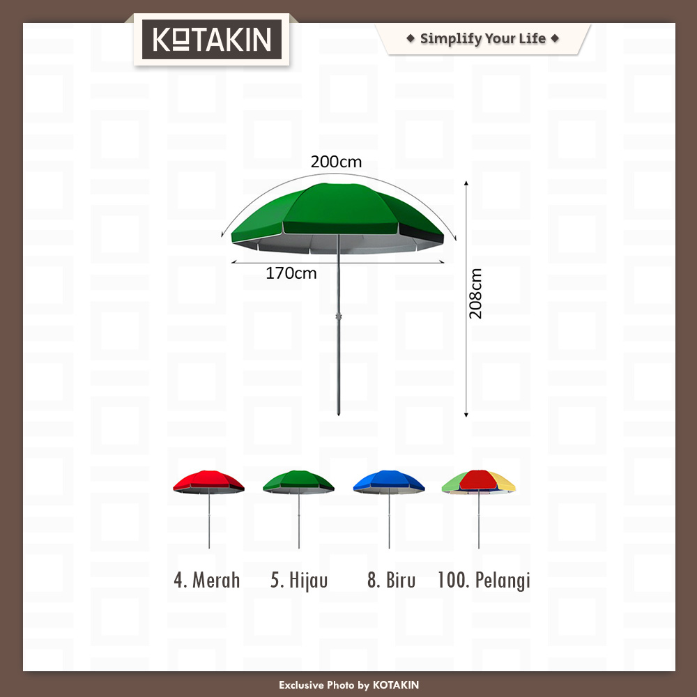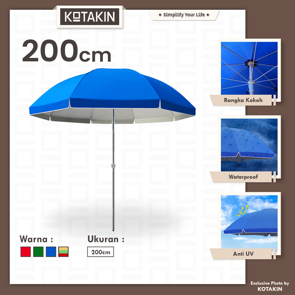 • Pemasangan payung & tiangnya sistem sambung (2 bagian), jika payung tidak sedang dipasang bisa jadi pendek (tidak ribet dibawa)